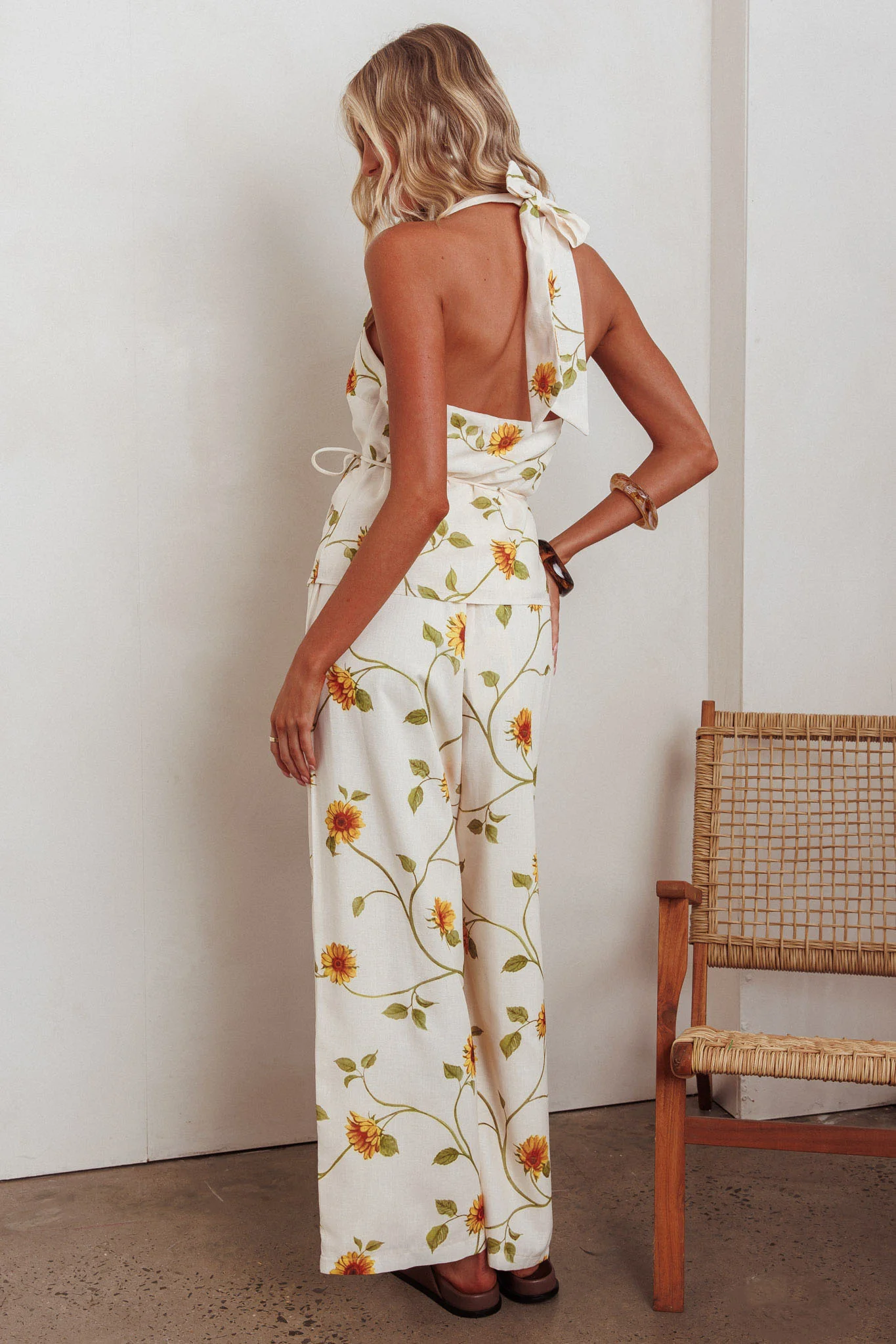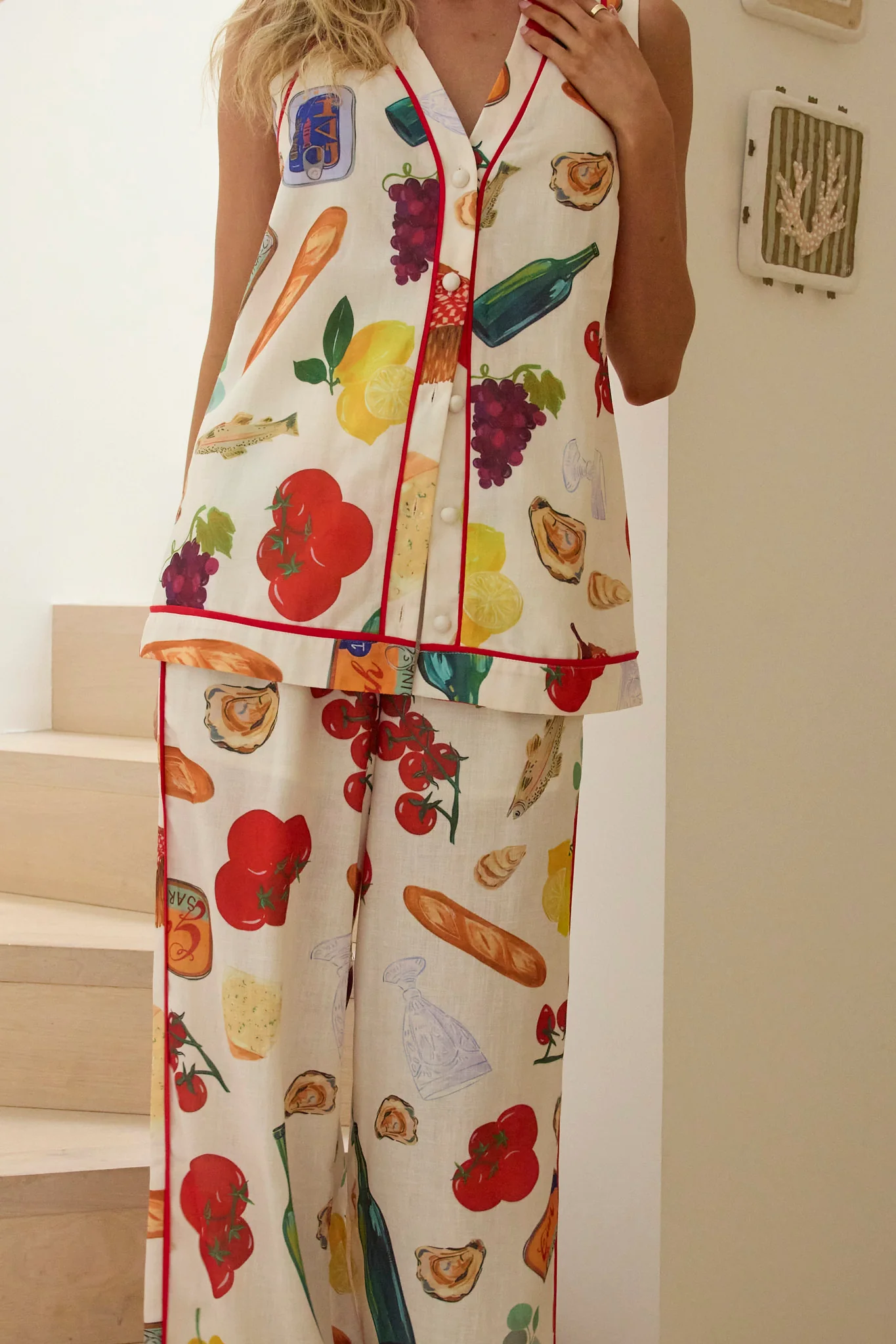 Canyons Piping Trim Wide Leg Pants Print Beige
