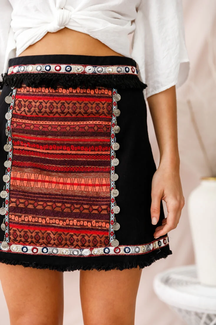 Kris Tassel Trimmed Wrap Skirt Mocha